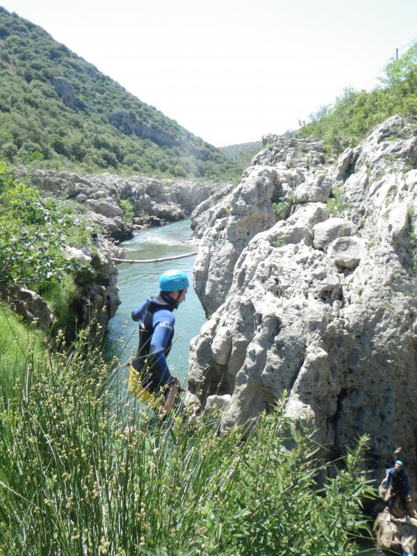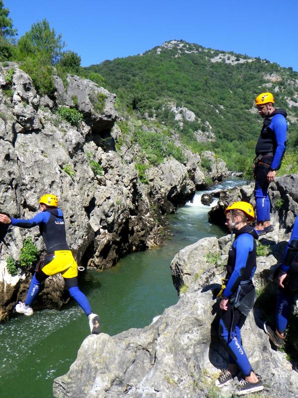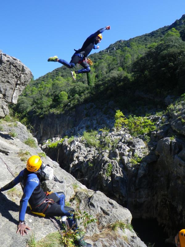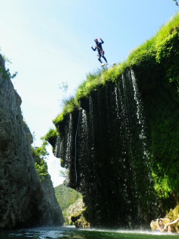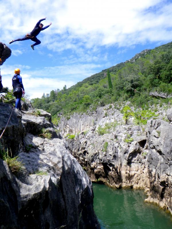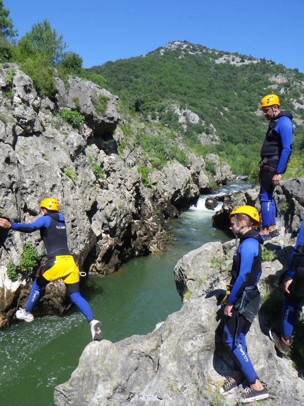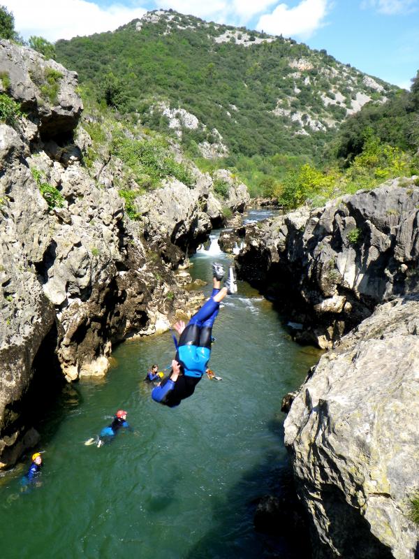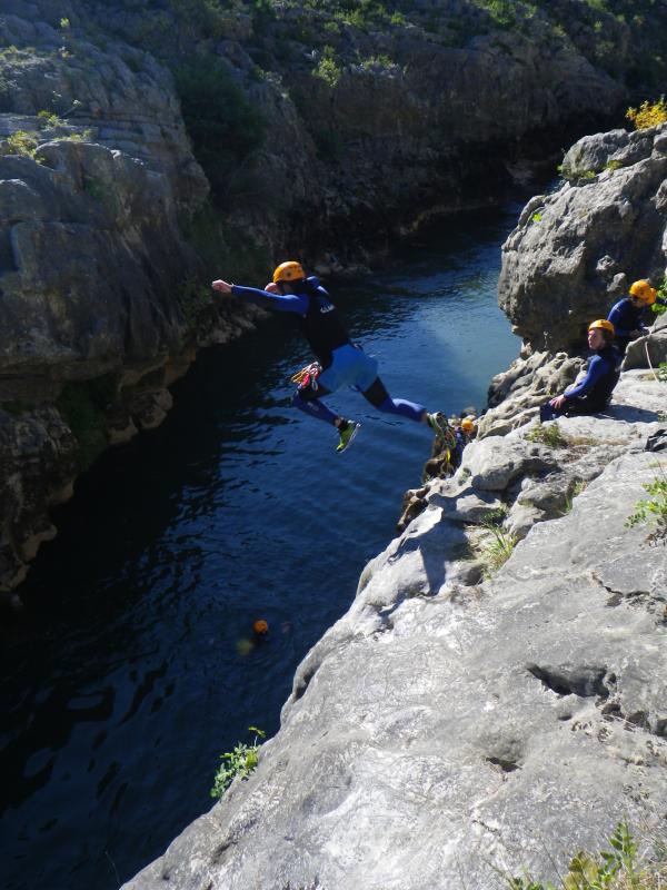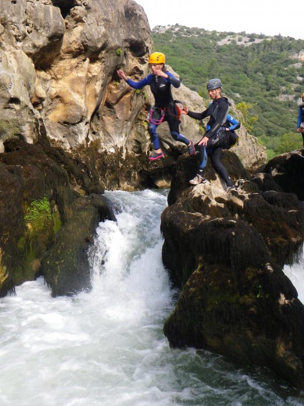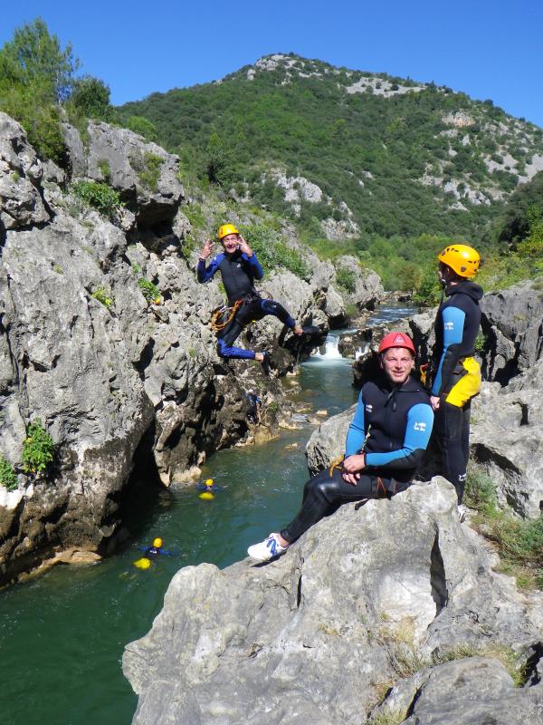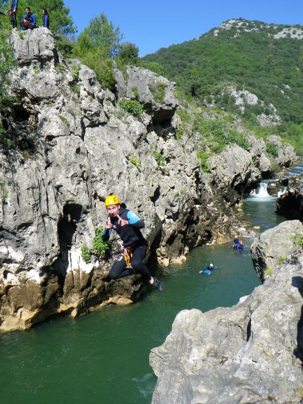 This descent is a true initiation to the canyon for those wanting to experience without the technical aspect of the activity, but also a fabulous fun aquatic course: Even diligent Canyon practitioners are playing in this descent, because that is exactly what that is sought by this descent, have fun in the water, jump and play in the bubbles, without worrying about the water flow in dry periods: the canyon of the devil being the narrowest part of the gorge Hérault, the water level is always constant.