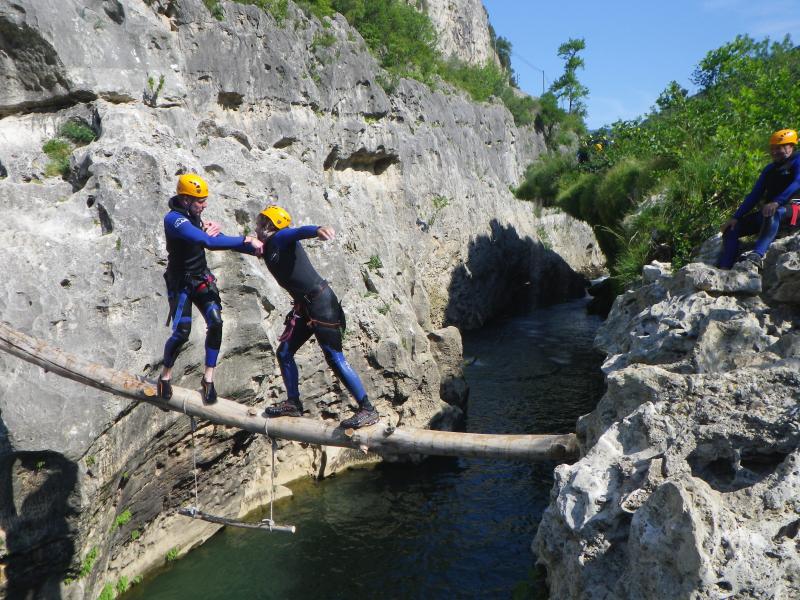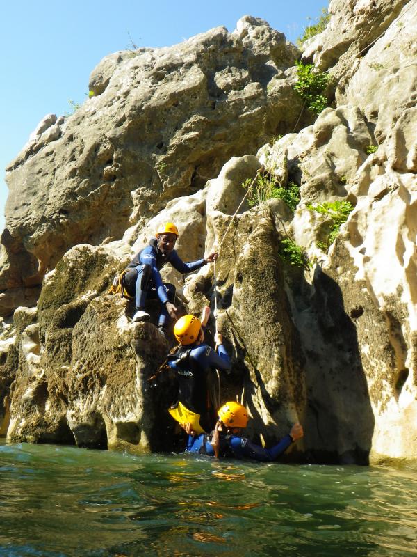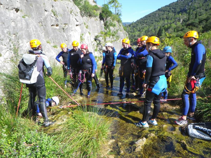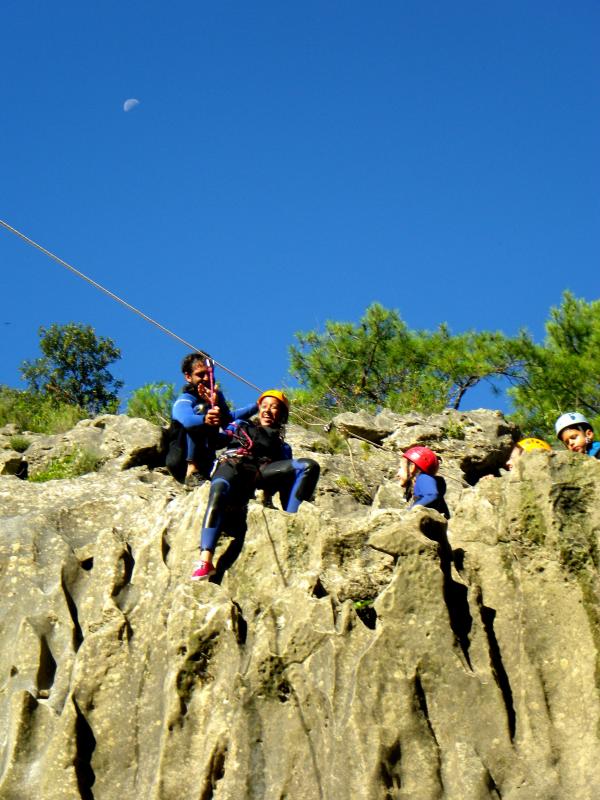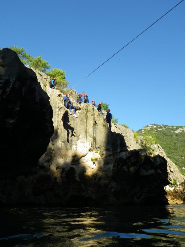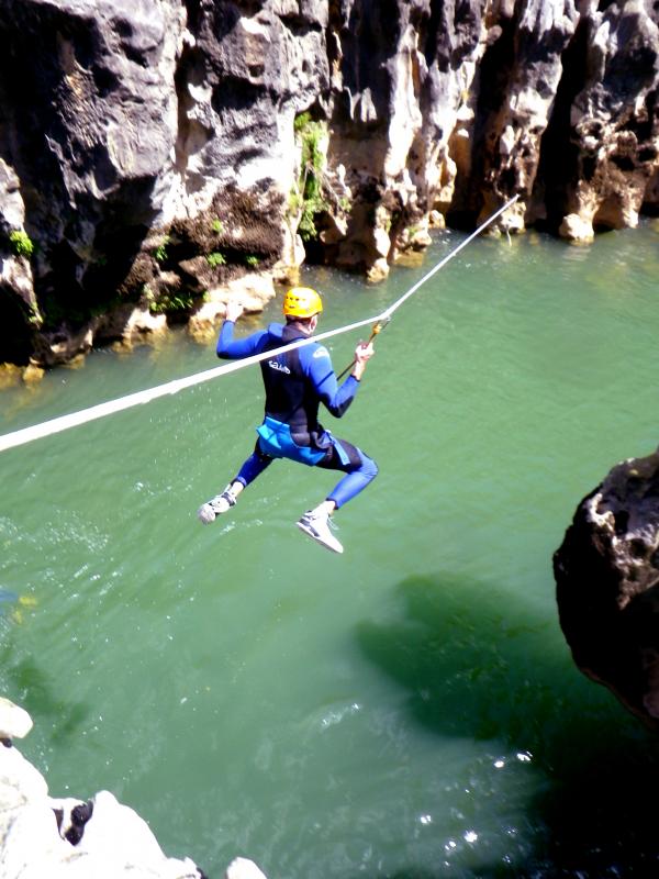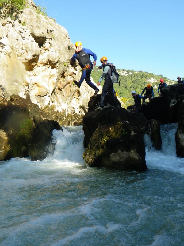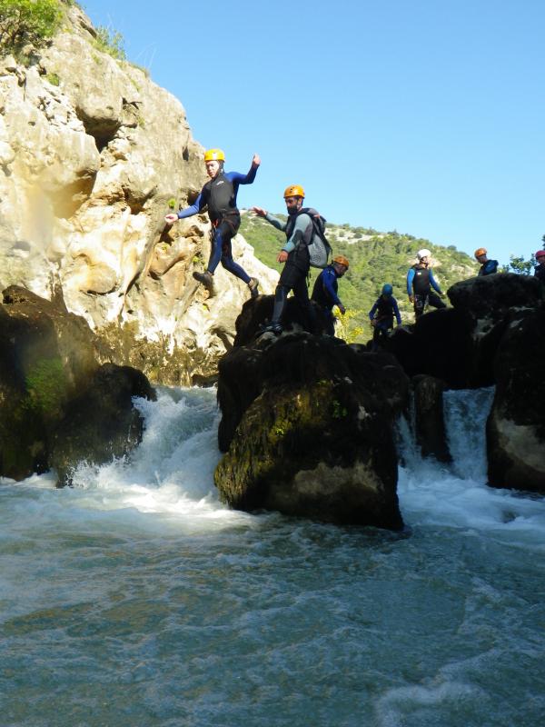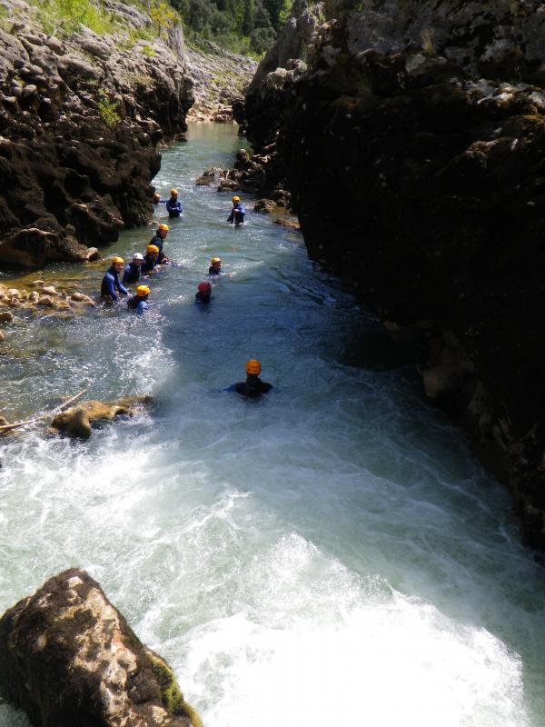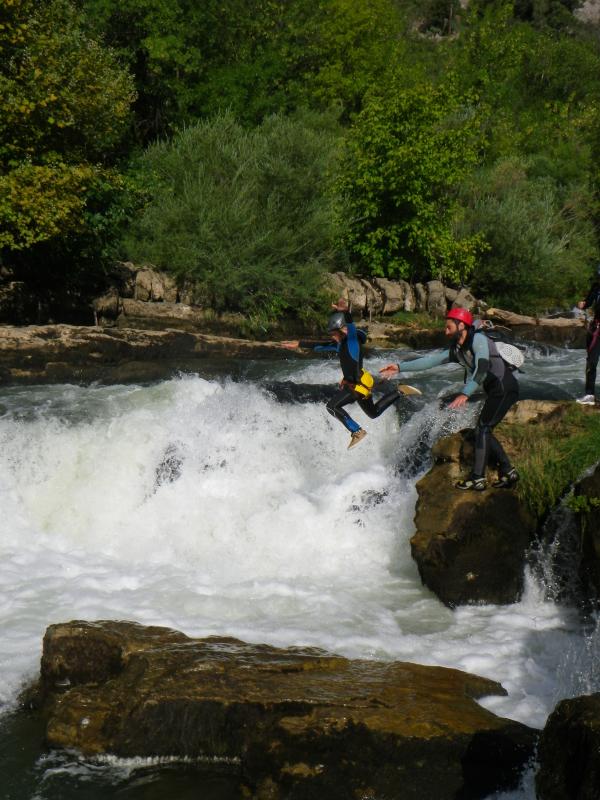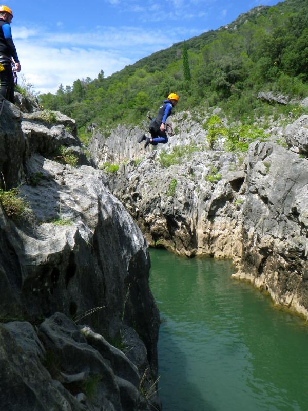 This descent is a true initiation to the canyon for those wanting to experience without the technical aspect of the activity, but also a fabulous fun aquatic course: Even diligent Canyon practitioners are playing in this descent, because that is exactly what that is sought by this descent, have fun in the water, jump and play in the bubbles, without worrying about the water flow in dry periods: the canyon of the devil being the narrowest part of the gorge Hérault, the water level is always constant.