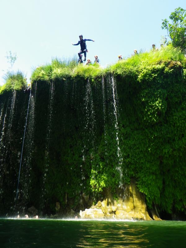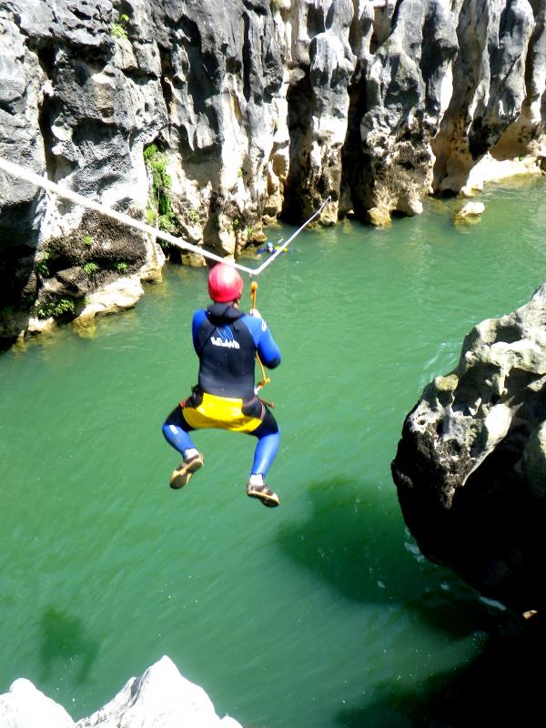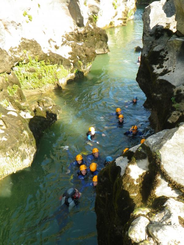 The whole point of this trip is that each participant may follow according to his capacity. Indeed, there are no obstacles in the progression, and those who want to be carried away along the stream enjoying the water can totally have fun and encourage others. And for those who want more excitement, this descent is the one that offers the greatest number of jumps (about a dozen, from 1m to 10m).