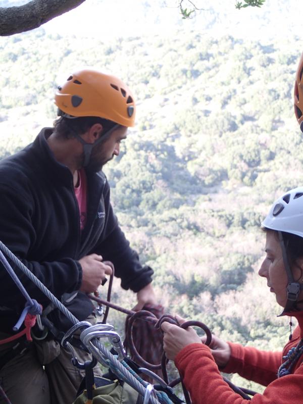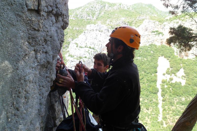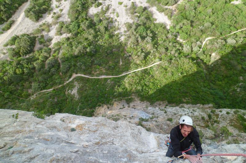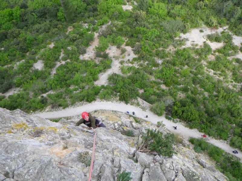 La descente se fait à pieds via un sentier. Cette voie est idéale pour des grimpeurs confirmés, avec une bonne maîtrise de l'assurage et à l'aise dans le 6b ainsi qu'une bonne condition physique. Il faudra compter au moins 4h d'activité de parking à parking.
