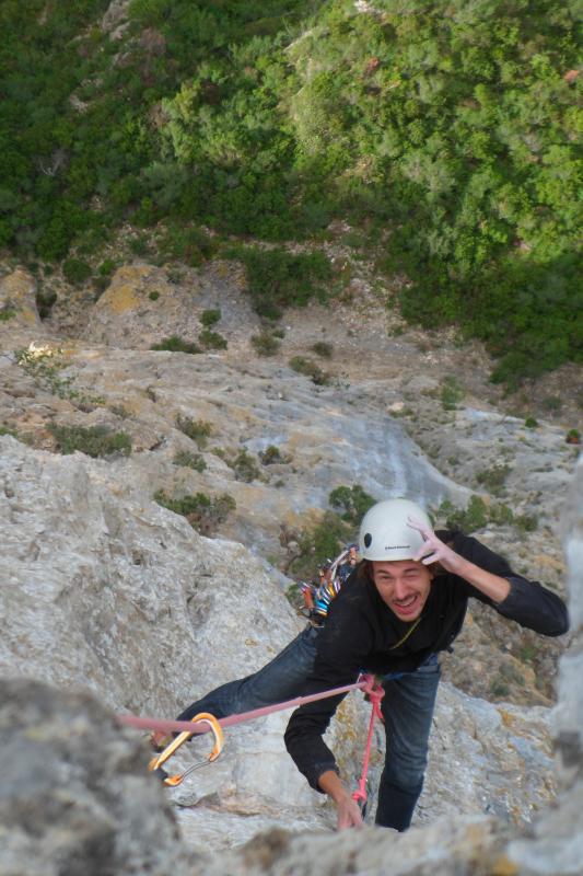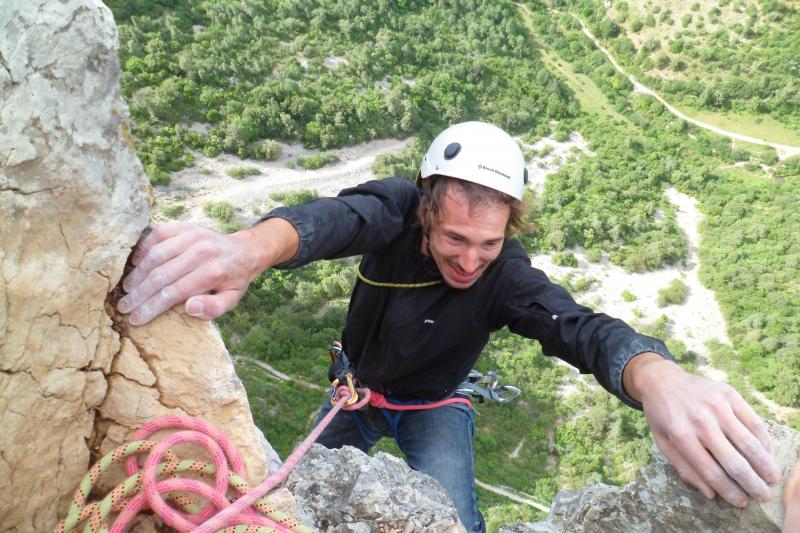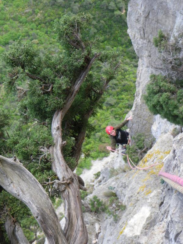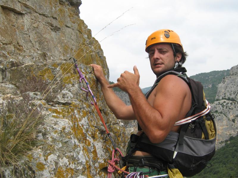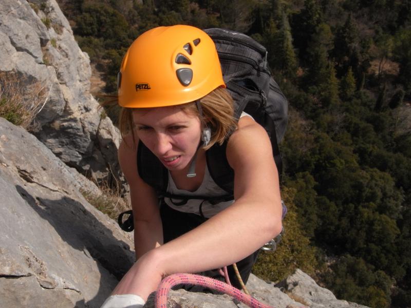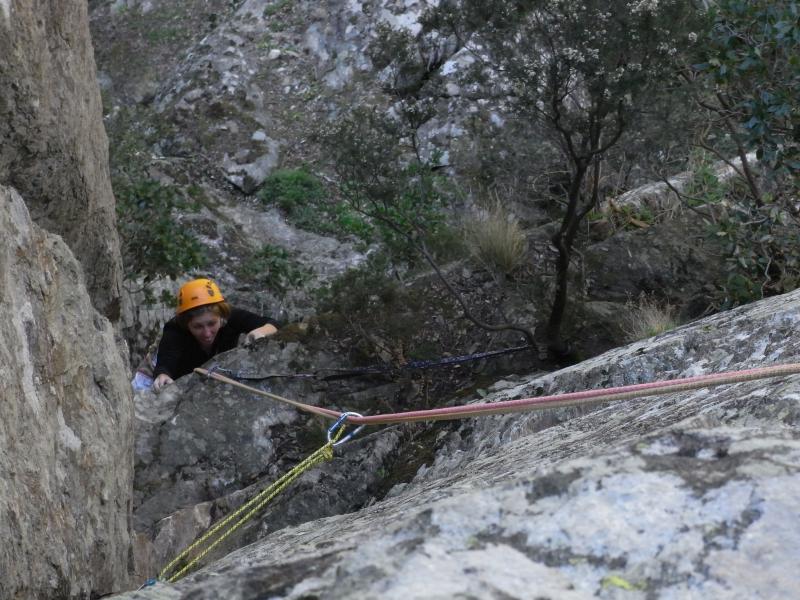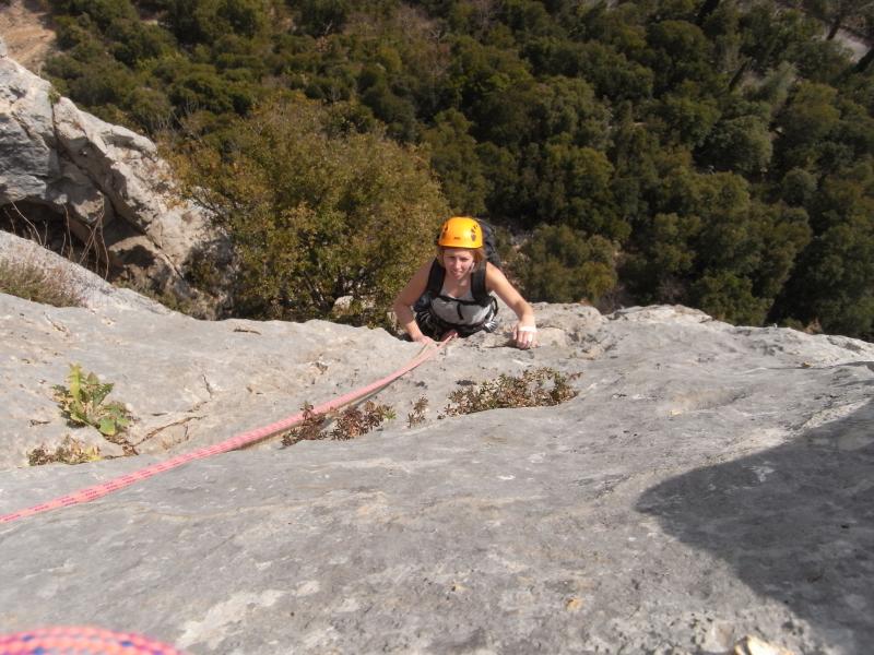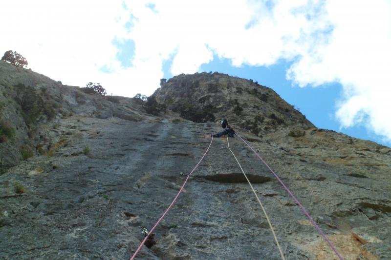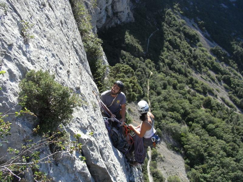 Les 3 premières longueurs sont déversantes, puis la paroi se redresse un peu sur la fin.