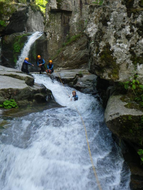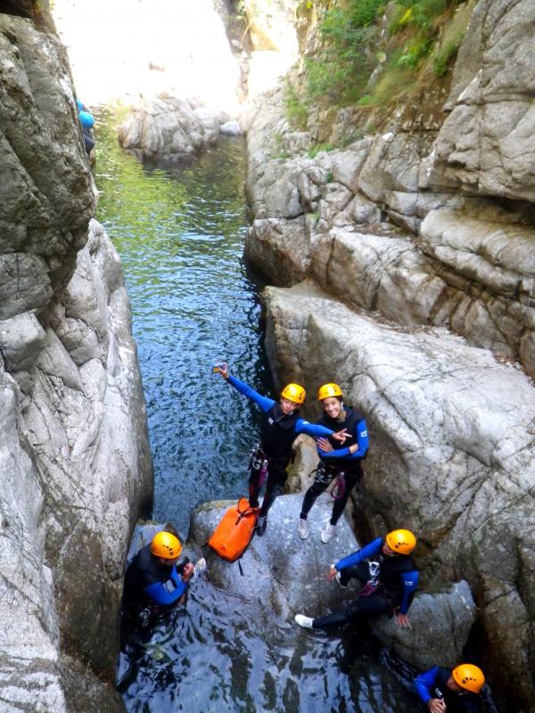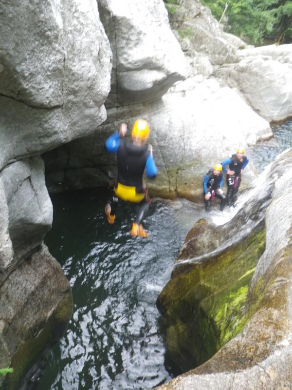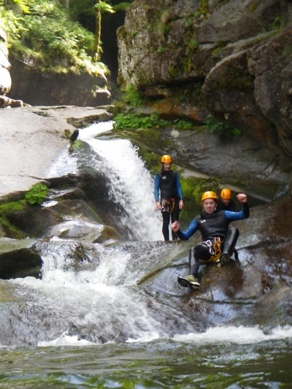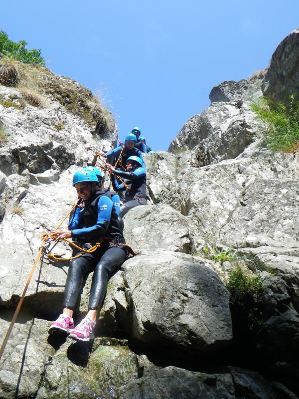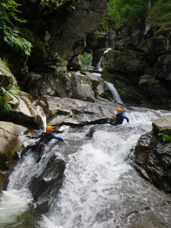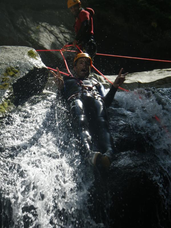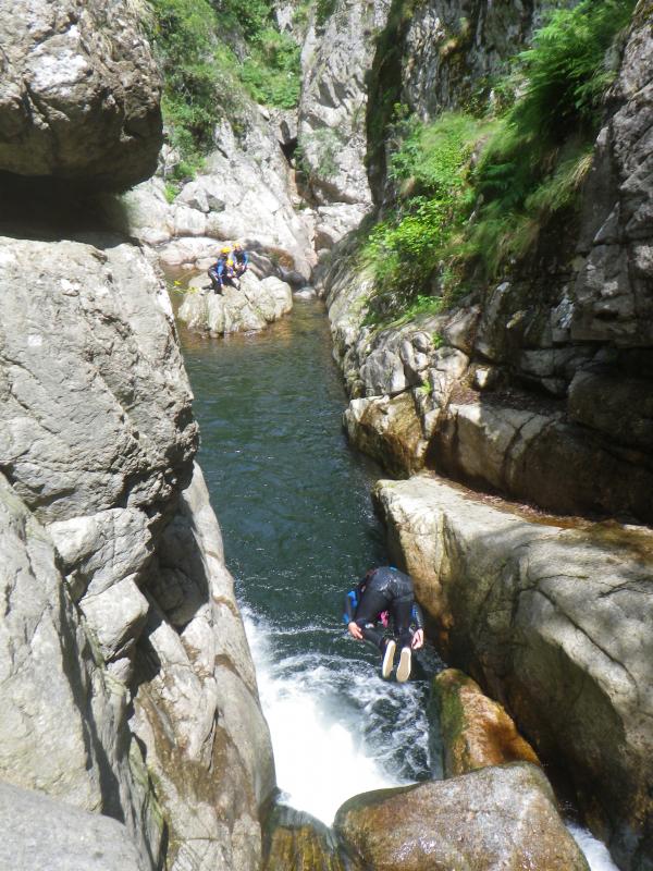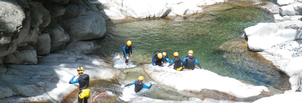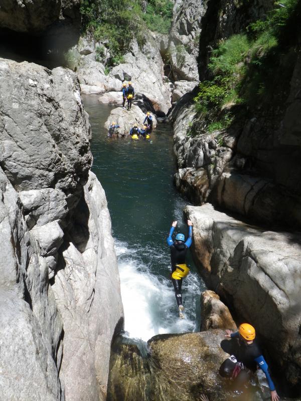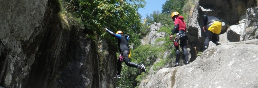 Canyoning is a leisure sporting activity. Going down rivers, and overcoming obstacles it offers, one must be equipped with a wetsuit and sneakers. Jumping, sliding, diving, swimming, abseiling ... and musing over the meandering water courses are ingredients for an outing rich in excitements.