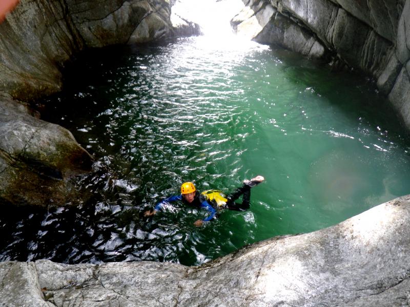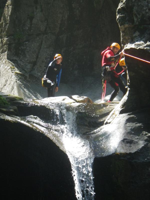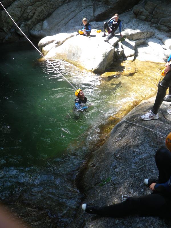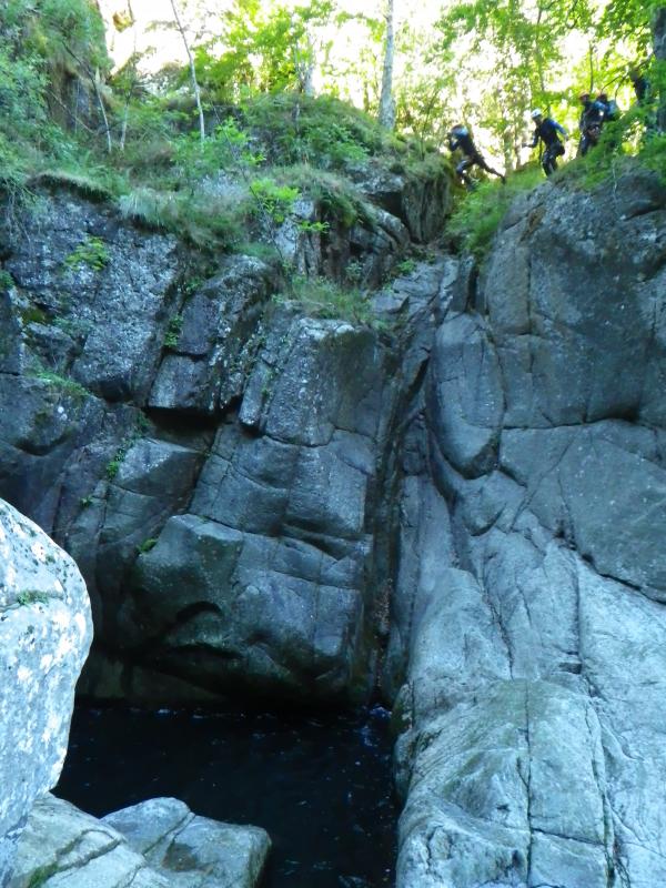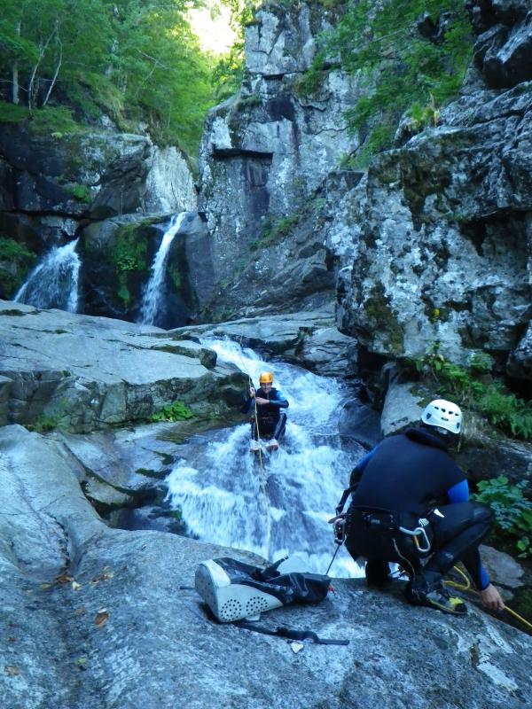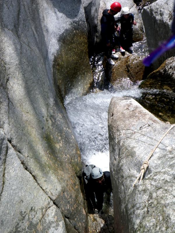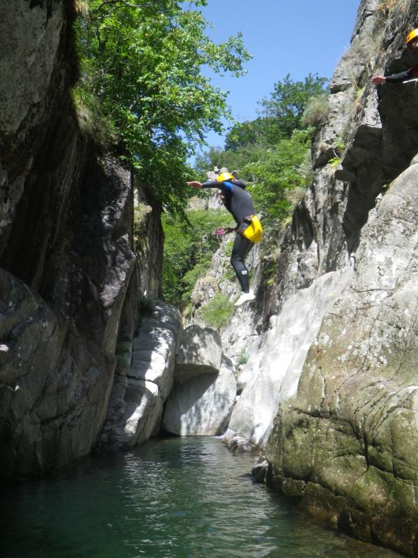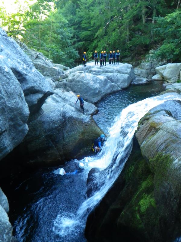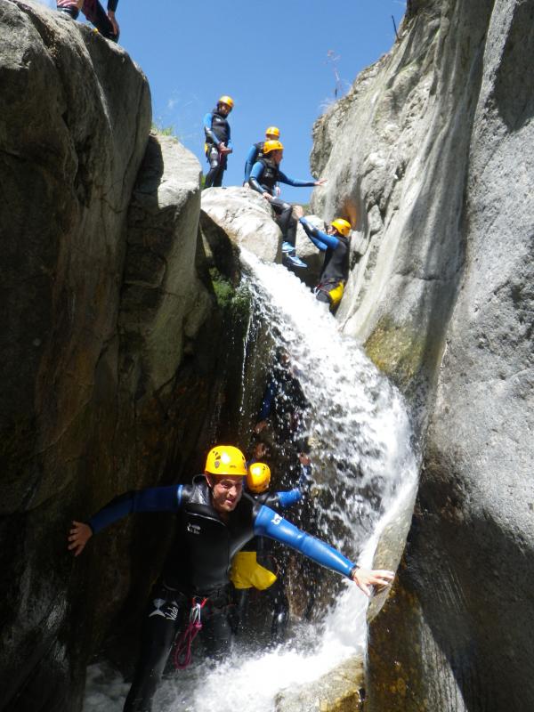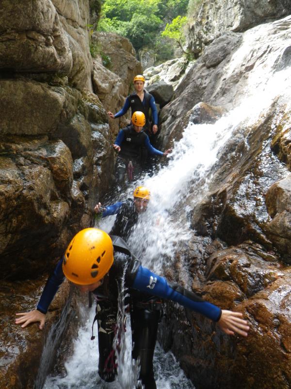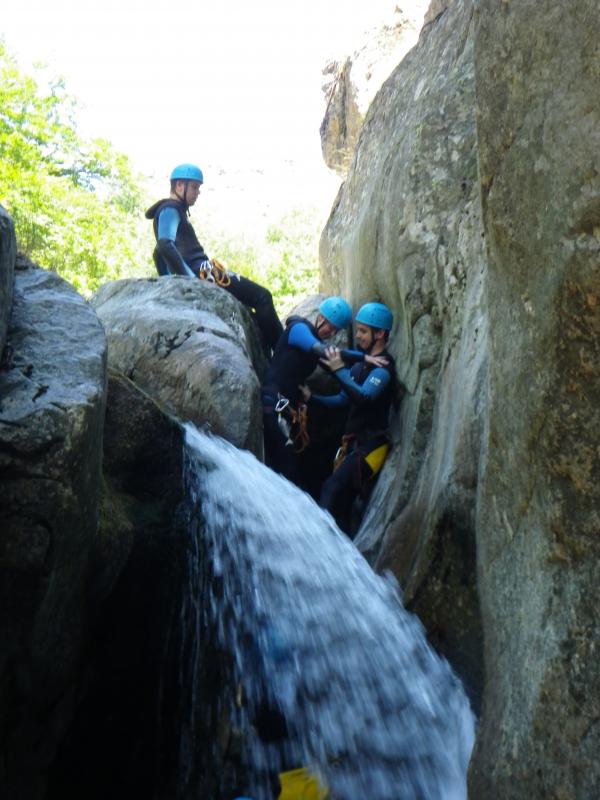 Canyoning is a leisure sporting activity. Going down rivers, and overcoming obstacles it offers, one must be equipped with a wetsuit and sneakers. Jumping, sliding, diving, swimming, abseiling ... and musing over the meandering water courses are ingredients for an outing rich in excitements.