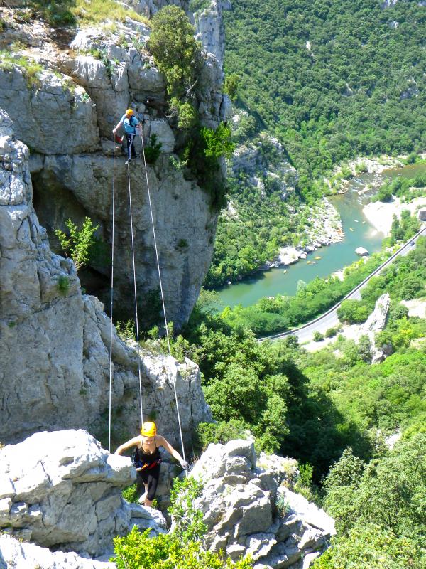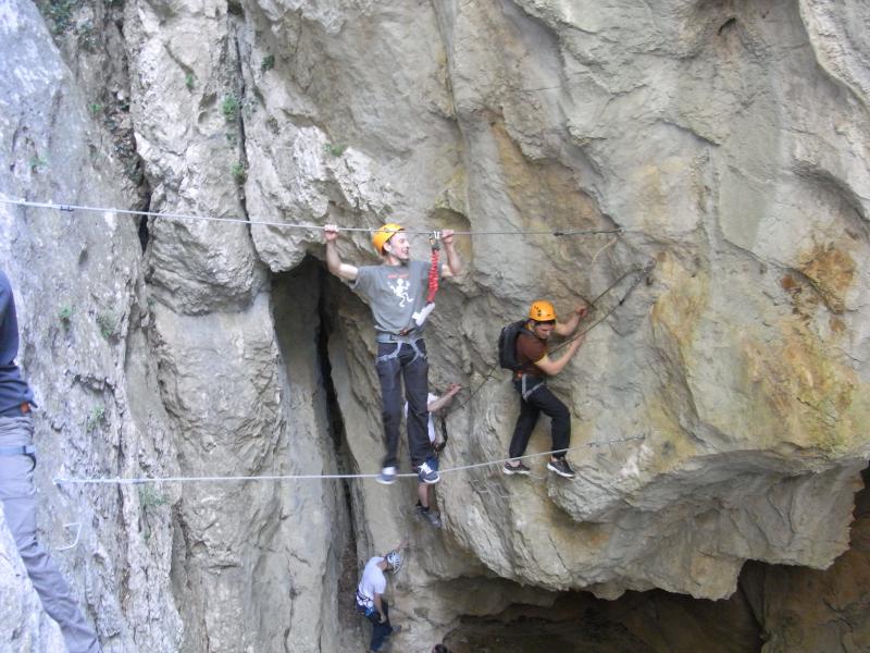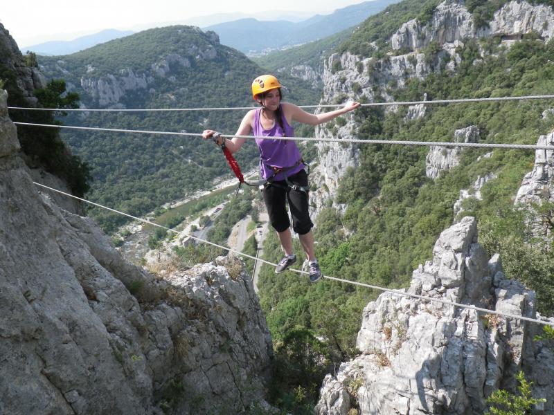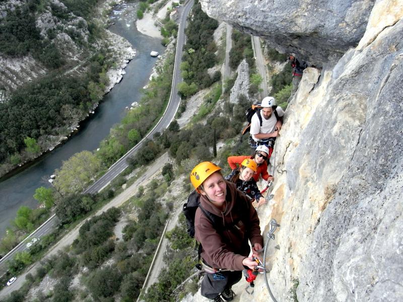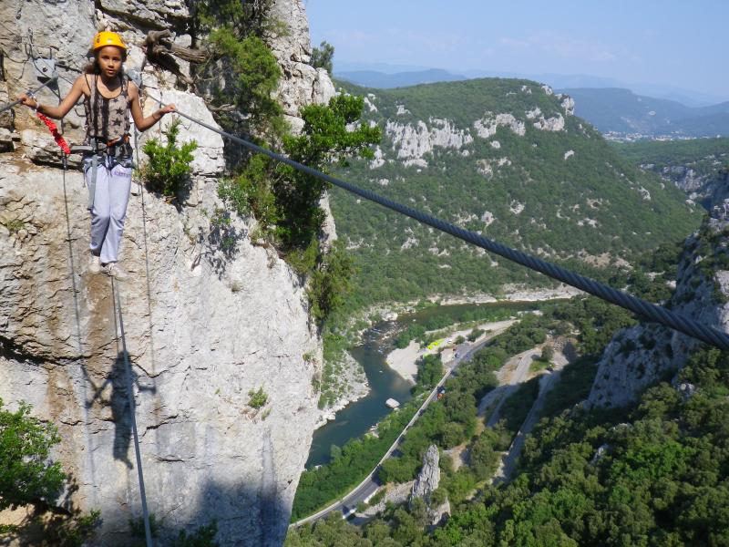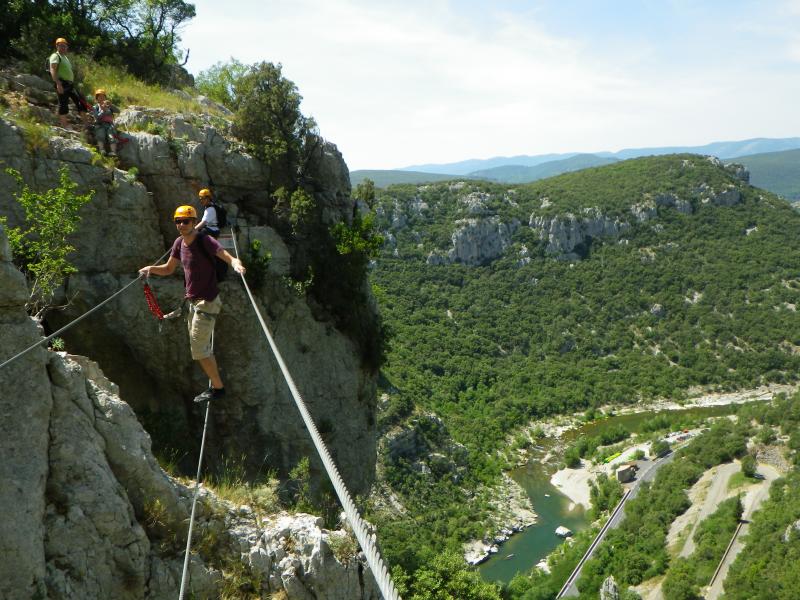 The half-day course is rich in excitement with a variety of workshops: all fundamentals of the “Via Ferrata” are found on this route, while you can observe canoes and kayaks going down to the magnificent “Gorge of the Hérault”.